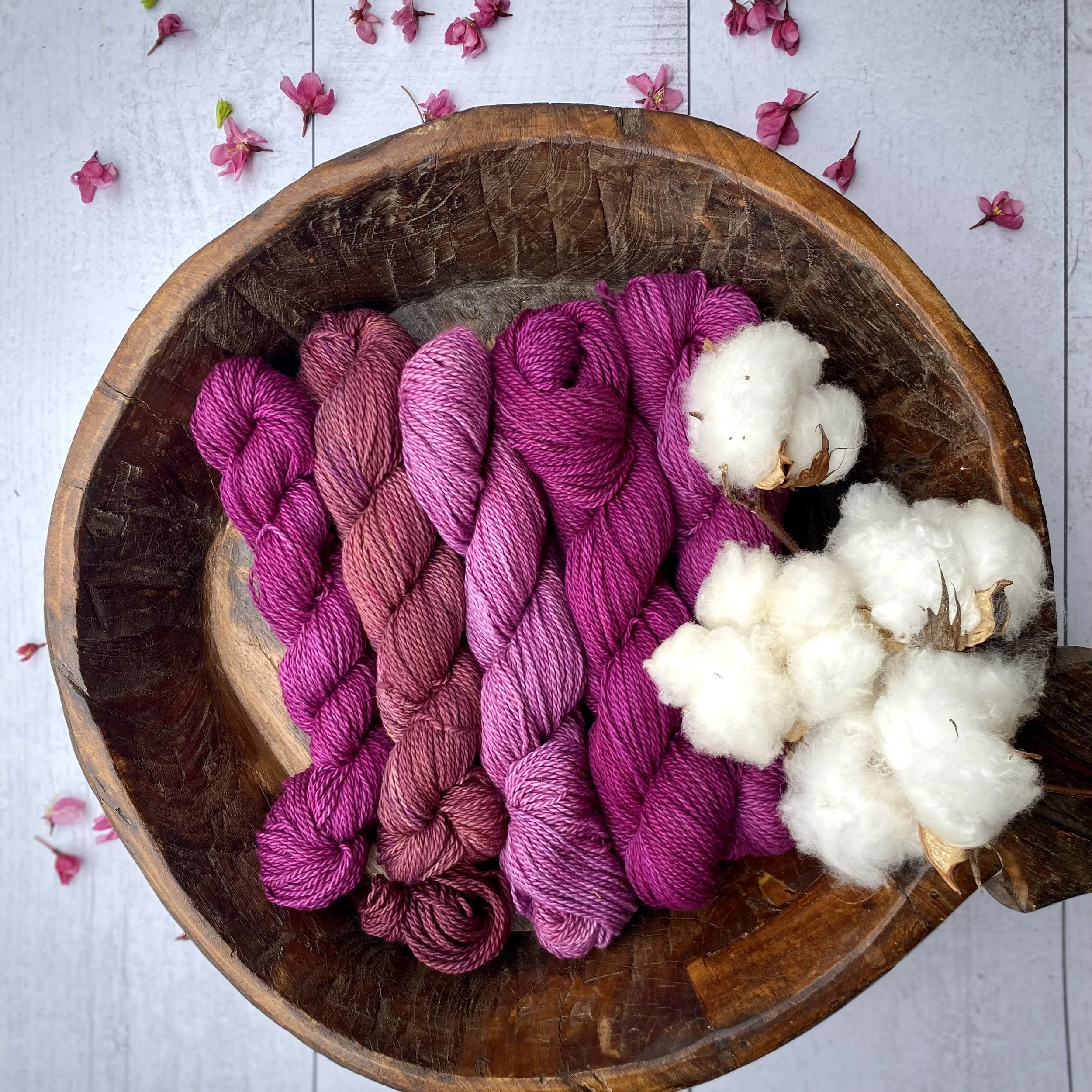 A lovely 2 ply Sport weight yarn spun in the USA from Organic Cotton grown in the USA. Hand dyed in Minnesota.